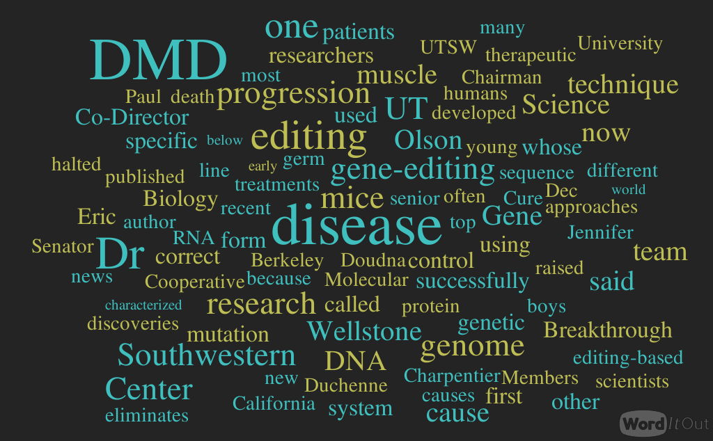 “This is different from other therapeutic approaches, because it eliminates the cause of the disease,” said senior author Dr. Eric Olson, Chairman of Molecular Biology, and Co-Director of the Senator Paul D. Wellstone Muscular Dystrophy Cooperative Research Center at UT Southwestern.