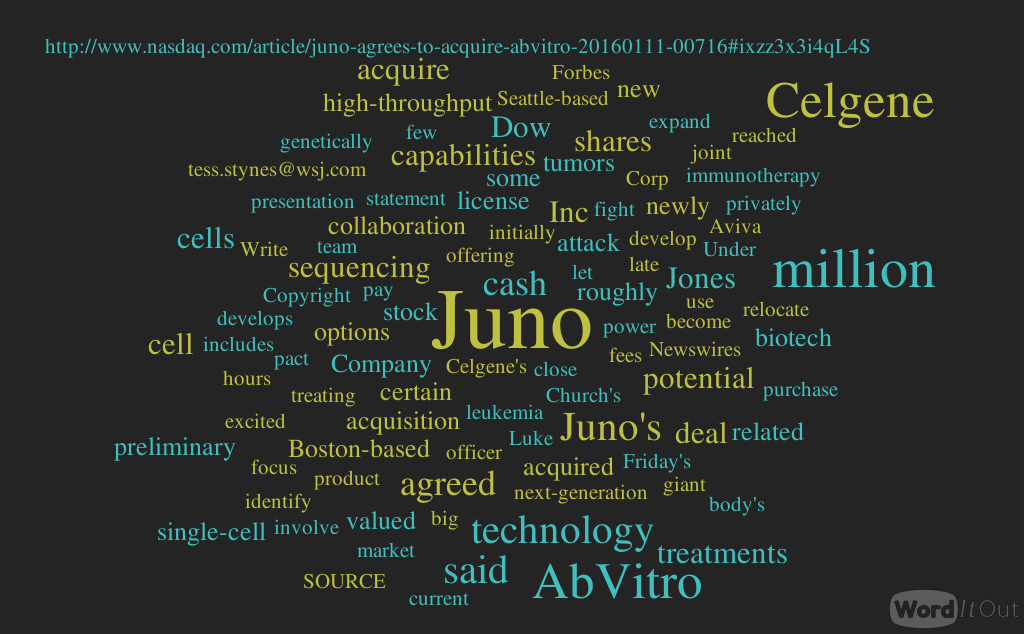 http://www.nasdaq.com/article/juno-agrees-to-acquire-abvitro-20160111-00716#ixzz3x3i4qL4S