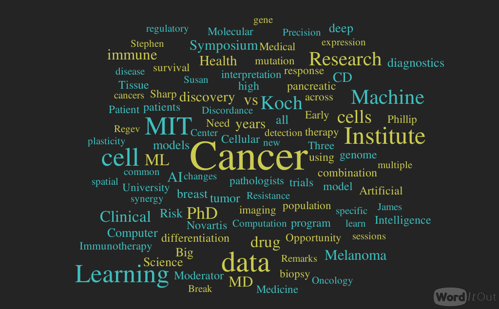 eProceeding 2019 Koch Institute Symposium – 18th Annual Cancer Research Symposium – Machine Learning and Cancer, June 14, 2019, 8:00 AM-5:00 PM ET MIT Kresge Auditorium, 48 Massachusetts Ave, Cambridge, MA