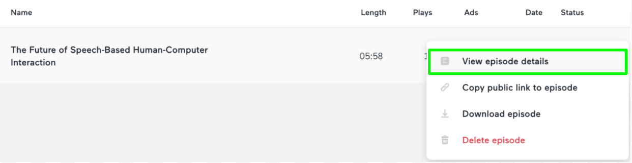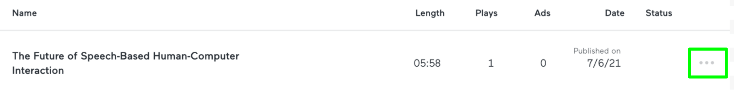 If you would like to edit a podcast, click the three dots to the right of the podcast and select “View episode details”