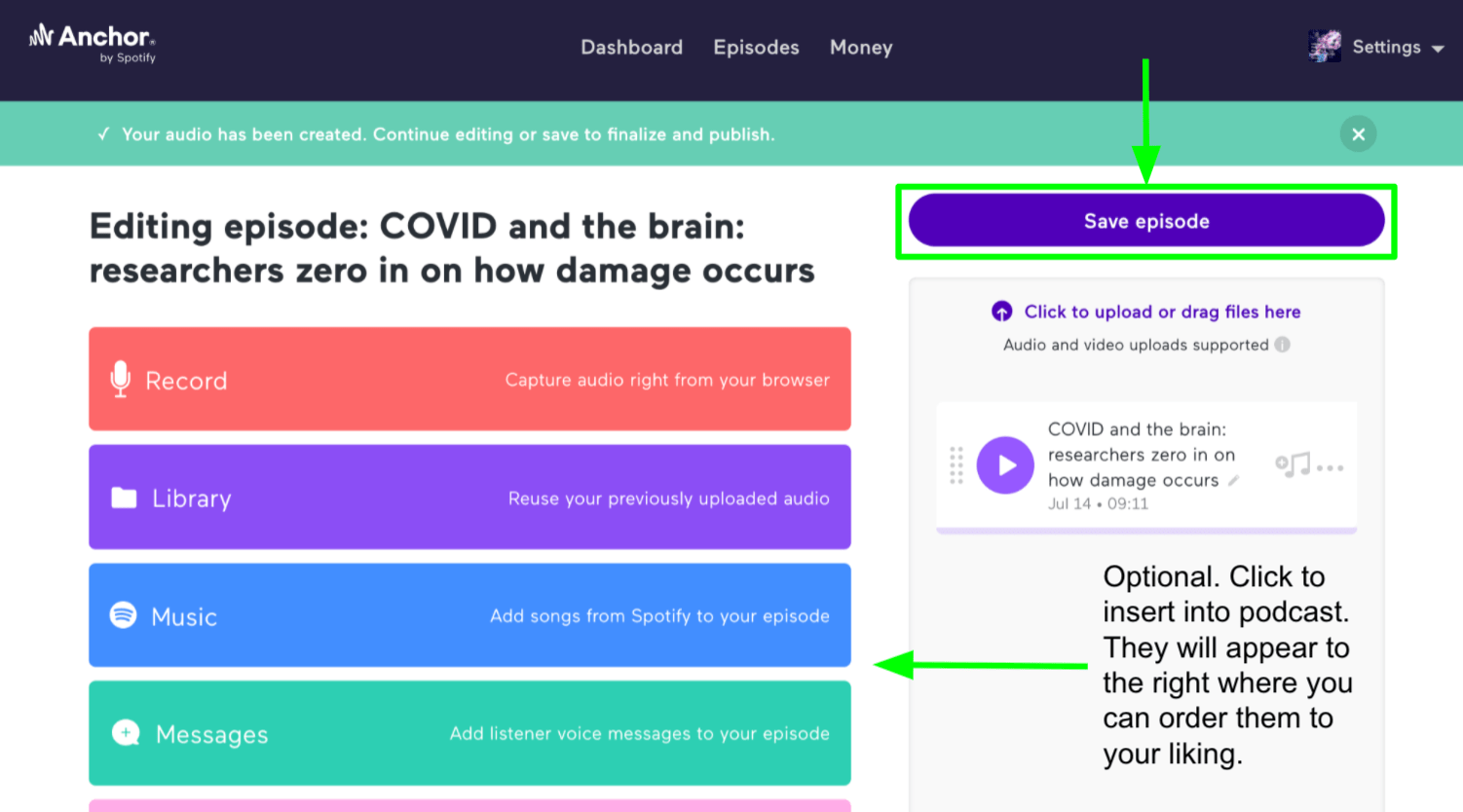 Once you have published an article on Anchor, you are now able to embed it within your article for viewers to listen and read at the same time.