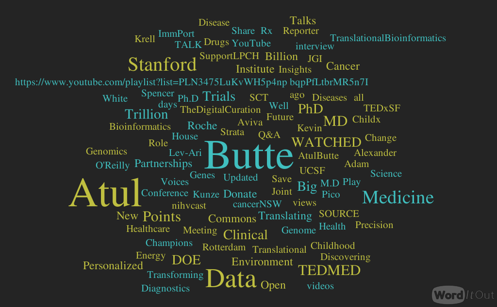 Atul Butte TALK on YouTube on Big Data, Open Data and Clinical Trials, Volume 2 (Volume Two: Latest in Genomics Methodologies for Therapeutics: Gene Editing, NGS and BioInformatics, Simulations and the Genome Ontology), Part 1: Next Generation Sequencing (NGS)